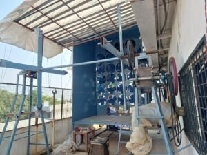 Learning from experience of wind tunnel -1 a new wind tunnel with manageable proportions is fabricated for testing of a smaller (less than 1 sq. meter) wind turbine. This time fins type aerodynamically balanced impeller blade panels are used. these blades are total 7 in numbers with individual diameter of 13″and total tunnel cross section of tunnel is 48″x48″. this time the tunnel is configured on suction based drive with all the 7 motors driven by synchronous dive.